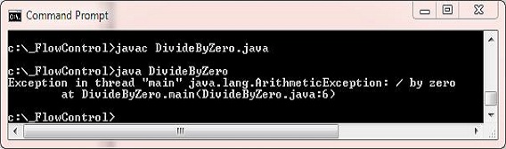 Save, compile and run the DivideByZero class in directory c:\_FlowControl in the usual way.